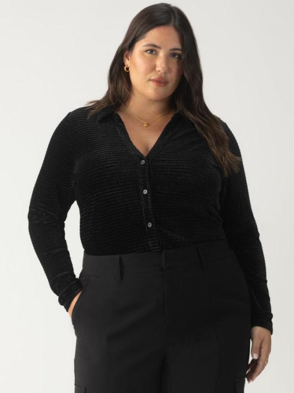 Women Inclusive | Sanctuary Clothing Textured Velvet Button Up Top Black Inclusive Collection