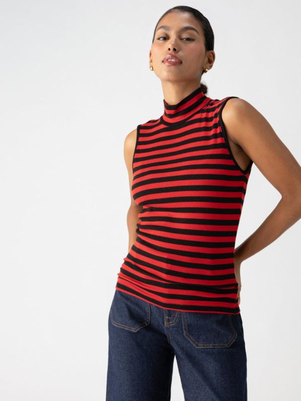 Women Tees & Tops | Sanctuary Clothing Essential Sleeveless Mock Neck Tank Black Cherry Red Stripe