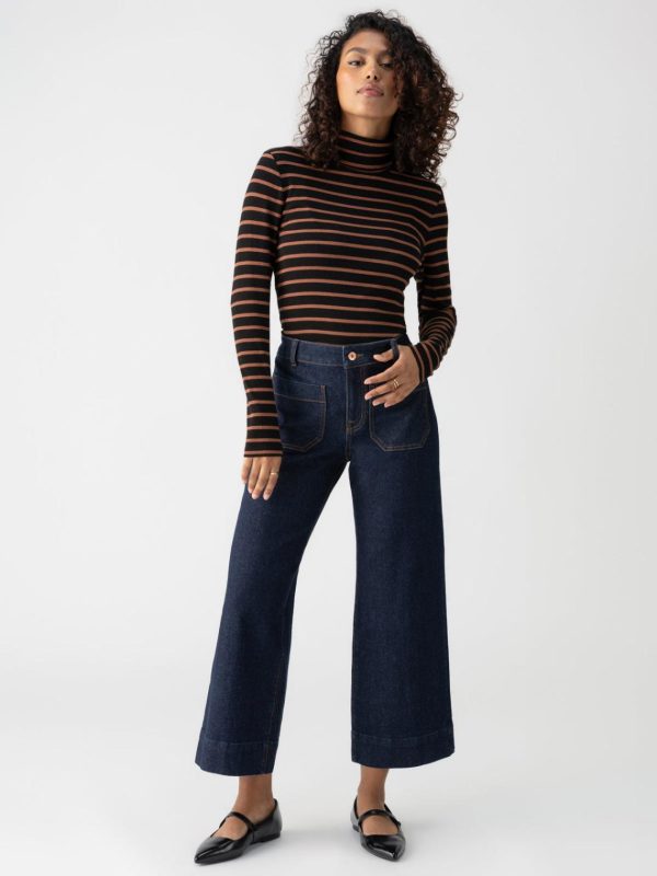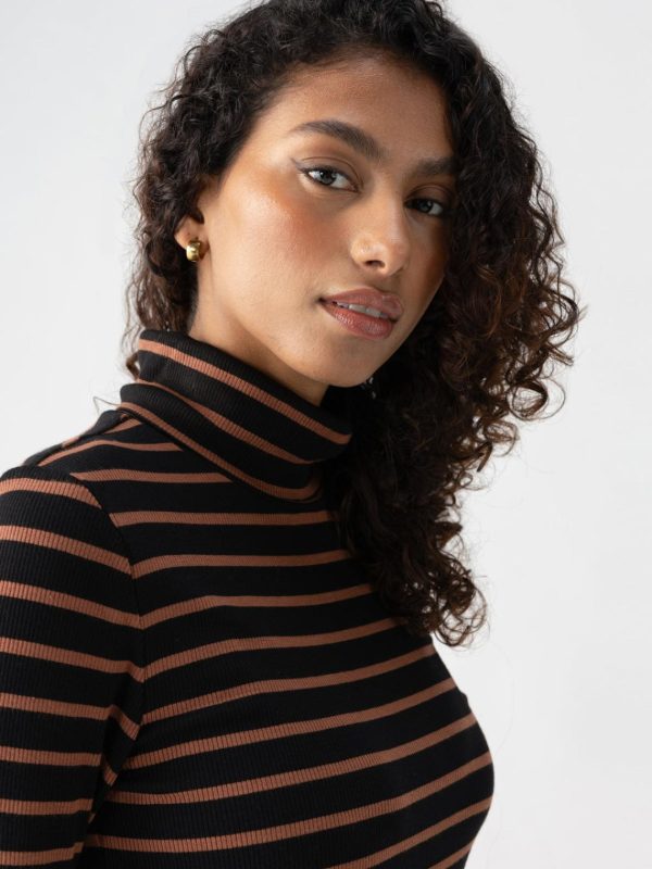 Women Tees & Tops | Sanctuary Clothing Essential Turtleneck Top Raw Hide Black Stripe