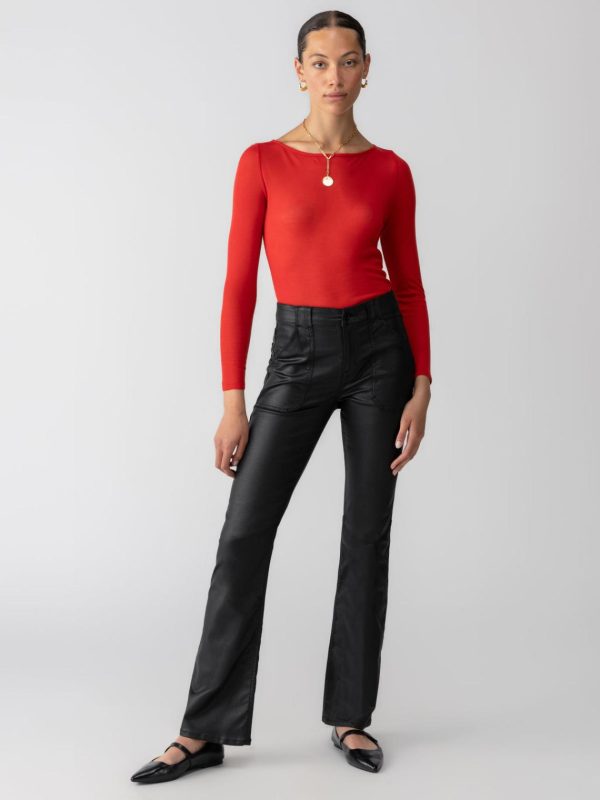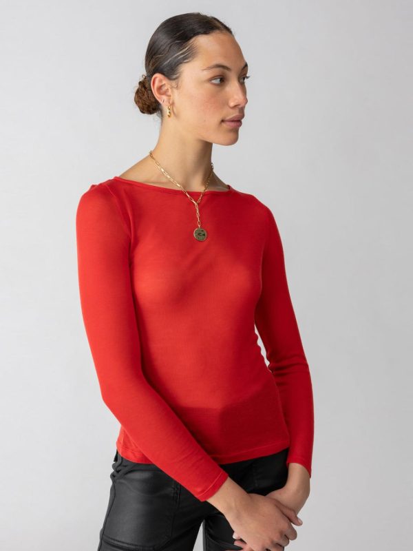 Women Tees & Tops | Sanctuary Clothing Essential Sleeveless Mock Neck Tank Black Cherry Red Stripe